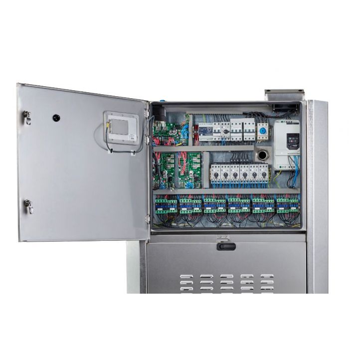Equipado com motores trifásicos de alta tensão (geralmente 440 V) e controles eletrônicos precisos, o equipamento garante estabilidade no desempenho e respostas rápidas aos ajustes de operação. Essa integração permite monitoramento em tempo real e facilidade na manutenção preventiva.