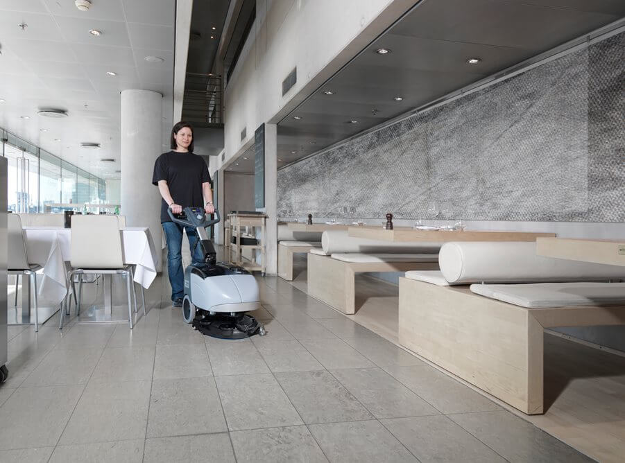 A Lavadora e secadora de pisos para limpeza diária.
