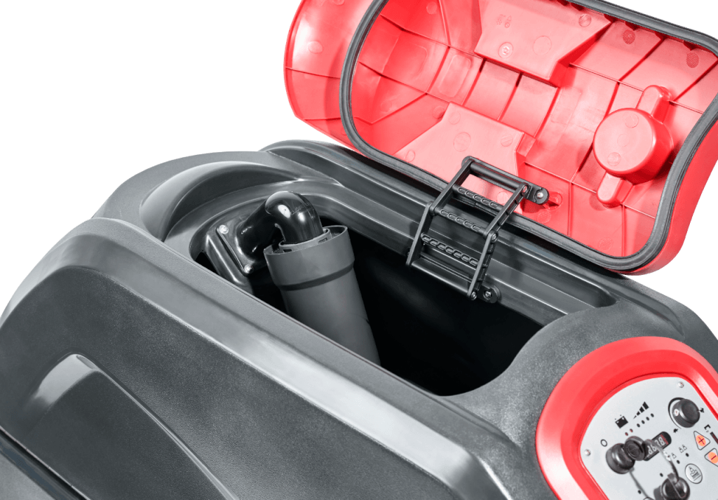 Com uma faixa de trabalho de 51(cm) e motor de escova potente de 450(W), este equipamento realiza o trabalho com agilidade e facilidade. Além disso, está equipada com motor de tração de 150(W), tanques de 61(L) e baterias de 2×12(V), assegurando muitas horas de limpeza.
